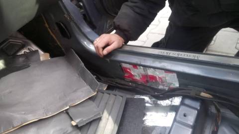 Зокрема, у порожнинах багажного відсіку, в підлозі та в дверях авто було виявлено понад 500 пачок прихованих цигарок.