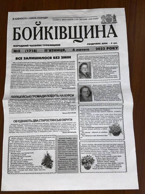 "Бойківщина" – це суспільно-політична газета, що з іншою назвою функціонує ще з тих старих добрих часів. Зрозуміло, що кардинально змінився зміст. Вона розрахована на місцевого читача. Є різні видання нашого рівня, так звані районки, але я вважаю, що місцева газета має нести інформацію читачеві.