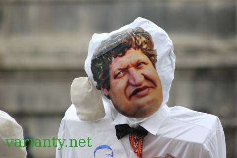 Поміж гасел та викриків майоріли опудала тих, кого вернісажі вважають винними у запланованому перенесенні на маргінеси. Їх дружні шаржі вгинались колами і найбільше з фотороботом не пощастило Василю Павлюку, якого якась вразлива мистецька душа зобразила косооким понтіпаєм. Павлюк, як герой сьогоднішнього дня, згодом дуже довго та бурхливо ображався, за таке художнє обливання лайном його невинної християнської душі.