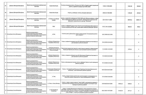 Директорка департаменту фінансової політики Вікторія Довжик витратила на відрядження 161 161,56 грн (всього 14 відряджень). За кордоном вона побувала у Туреччині, Польщі, Швеції та США: