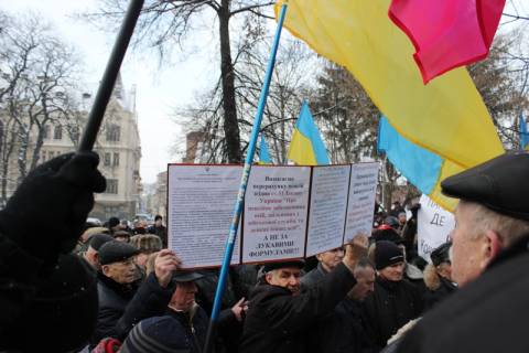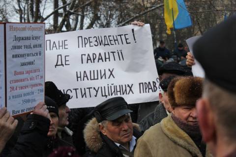 "Ми вимагаємо від влади повернути ветеранам МВС, Збройних сил, прикордонникам та пожежникам, всім, хто вийшов на пенсію, їхнє правове поле та перерахунку пенсій", – заявив учасник мітингу Степан Шиян.