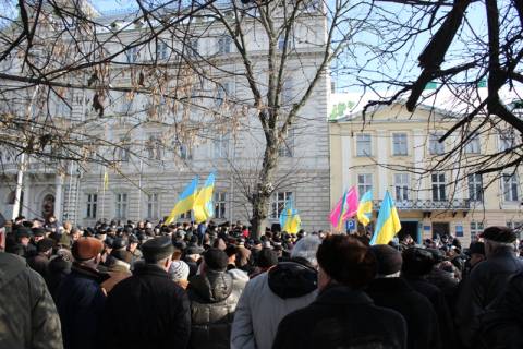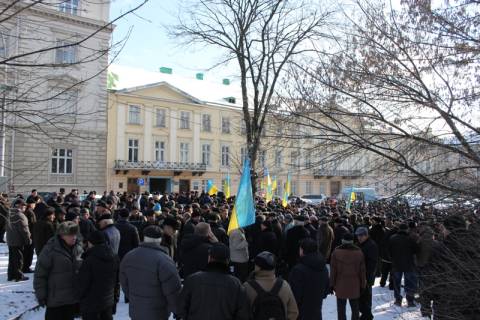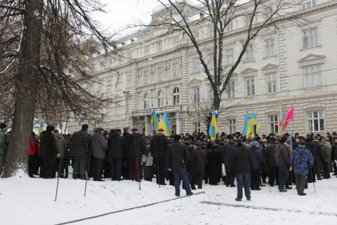Сьогодні, 17 січня, з акцією протесту під Львівську ОДА прийшли близько двох сотень військових пенсіонерів, ветеранів МВС, передає кореспондент Варіантів.