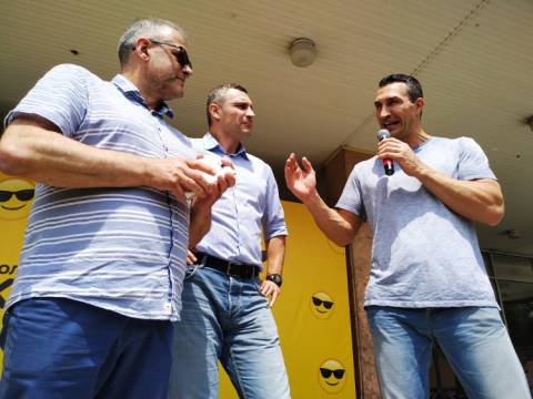 Володимир і Віталій Кличко сьогодні перебувають у Львові з робочим візитом. Вони привітали львівських спротсменів – переможців ІІ Європейських ігор у Мінську. Після чого провели зустріч з мешканцями Сихова, на якій кожний охочий міг отримати автограф та зробити селфі з зірками українського боксу.