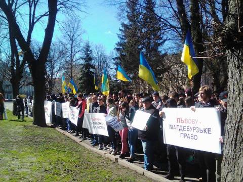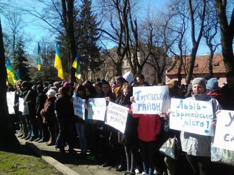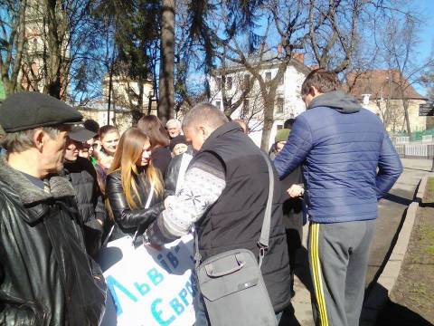 Група ініціативних громадян невідомого походження організувала сьогодні, 2 квітня, пікет під стінами Львівської ОДА.