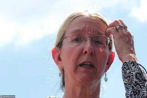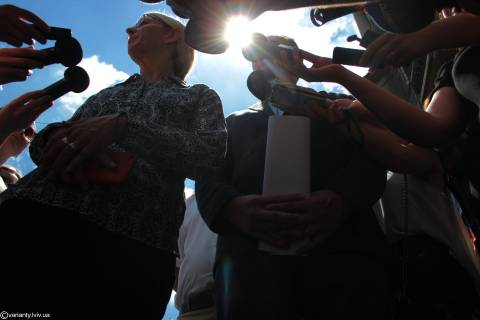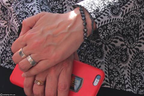 Злі язики напевне скажуть, що так вона компенсує компетентність, освіченість та акцент, але на вушках її – тризуби, у руках її – чорно-червоний телефон з тризубом та гаслом "Воля або смерть", а на зап'ясті – браслетик, типу хіппівської фенічки, з сакральним написом "fuck putin".
