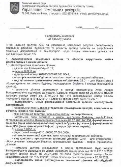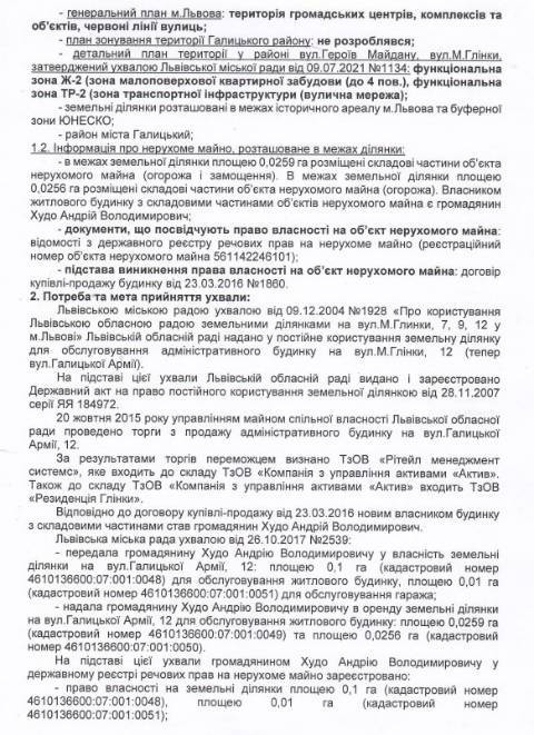 Вчора, 16 вересня, на сесії Львівської міської ради депутати надали львівському ресторатору Андрію Худі дозволу на поділ земельної ділянки на вул. Галицької Армії, 12 (колишня назва – вул. М. Глінки, 12) у Львові.