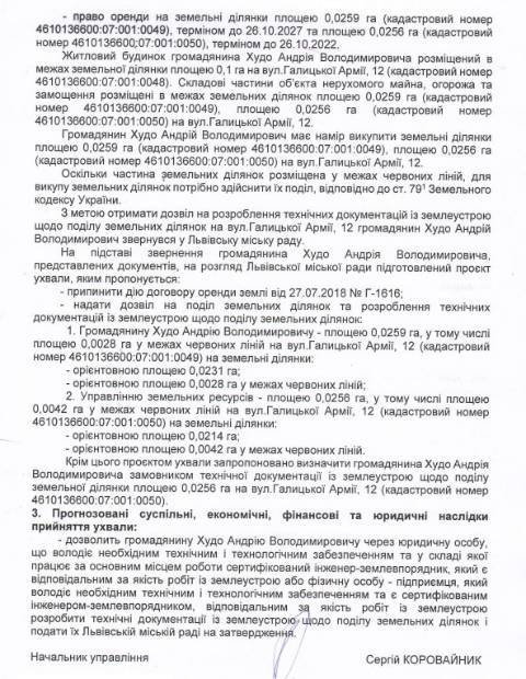 Зараз Худо планує викупити цю земельну ділянку, однак для цього потрібно її поділити.