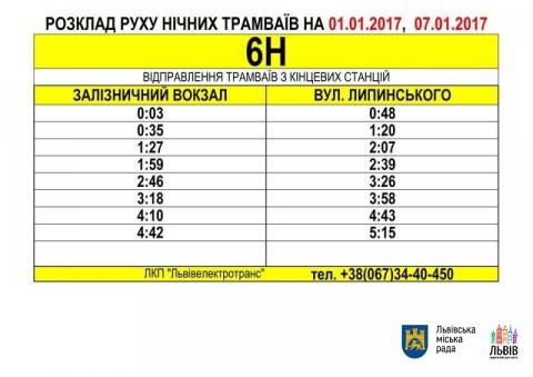 Відтак, у ніч із 31 грудня на 1 січня та з 6 на 7 січня у Львові курсуватимуть нічні трамвайні маршрути.