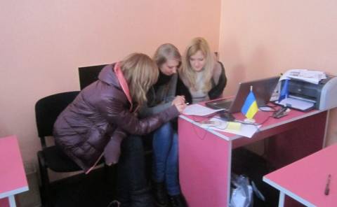 Сьогодні мені вдалося побувати у Пункті запису волонтерів на вул. Гнатюка, 17. У маленькій, але теплій кімнаті кілька дівчат щось обговорюють та записують на папері.