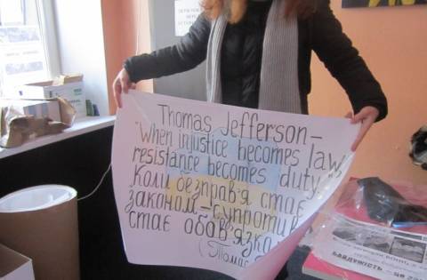 Пані Юля також розповіла, що вчора на базі пункту волонтерів було створено творчу майстерню Майдану.