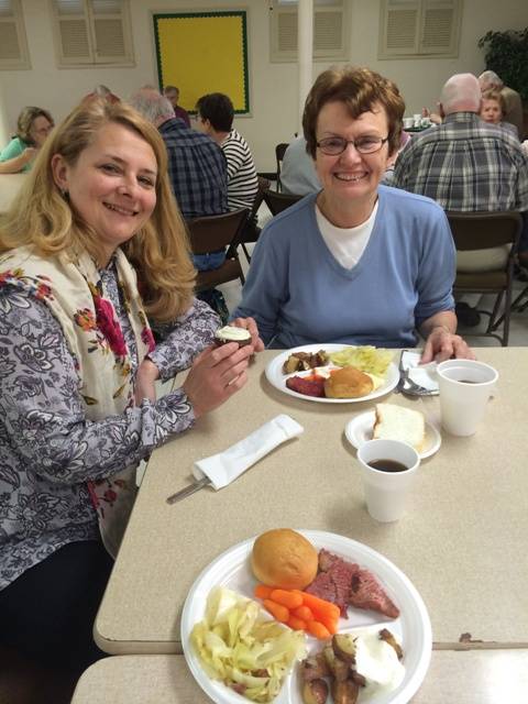 Вільма Мітчел і Оксана Гуранич на благодійному обіді в ментористській церкві м. Алель