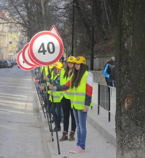 Волонтери загальноміської кампанії з безпеки дорожнього руху «Львів-безпечне місто» за неповні три місяці роботи провели тренінги для 1500 школярів та акції нагадування вибору безпечної швидкості руху для водіїв.