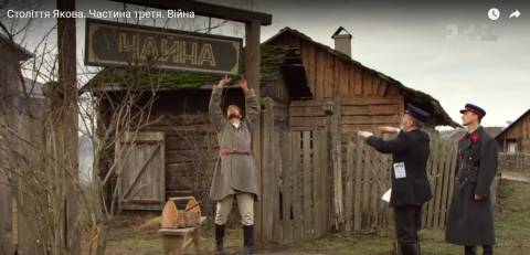 І така столична дикторська вимова, доречна та кайфова лише на радіо "Культура" (цей останній прихисток літературної вкраїнської мови) о 12 ночі під час читання Бальзака, саундтреком до якого згодом іде Жак Брель. І тільки масовка в шинелях інколи ходить, наче той солдат Швейк. То може режисер у Столітті Якова абсурд знімає? Пародію на сентиментальне вишиватне дрочерство, яке вже століття ходить намальованим колом, ніяк не може вийти на новий рівень і навіть не просить привідкрити йому повіки? Є у тих шинелях масовки щось невловимо салтиково-щедрінське, ненавмисне, звичайно, але мимовільно пародійне.