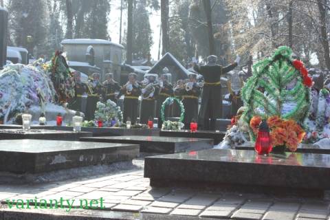 Покладання кошика квітів до могили учасника бою під Крутами Ігора Лоського на Личаківському кладовищі.