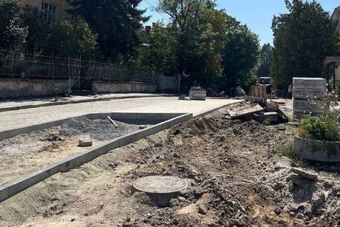 Як заявили у Галицькій районній адміністрації, цими вихідними тут асфальтуватимуть дорожнє покриття. Водночас вирівнюють тротуари, після чого облаштують нові газони. Частину витрат покриває інвестор.