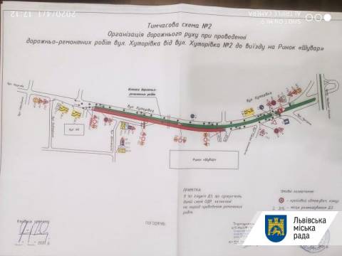 З понеділка, 6 квітня, проїзд по вул. Хуторівка буде обмежено – двосторонній рух буде організовано на смузі руху з Сихова (пр. Червоної Калини) до вул. Стрийської, а смуга від вул. Стрийської до Сихова буде перекрита.