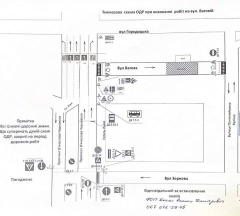 З 08.00 год 7 вересня і до 22.00 год 9 вересня 2022 р перекриють рух транспорту на вул. Ваговій. На цій ділянці ТзОВ "Гранат 101" ремонтуватиме каналізаційний випуск з будинку №11.