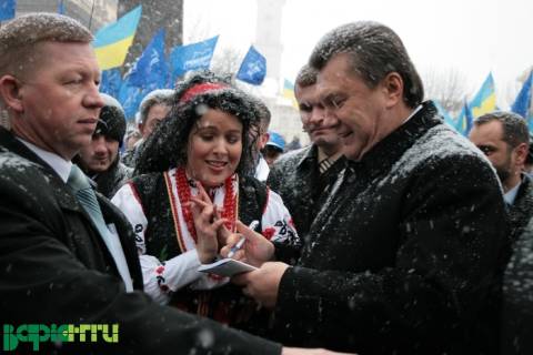 Ні сніг, ні дощі, ні холод не зупиняли львівських шанувальників і особливо, львівських шанувальниць світлого образу Віктора Федоровича Януковича, майбутнього президента України в екзилі.