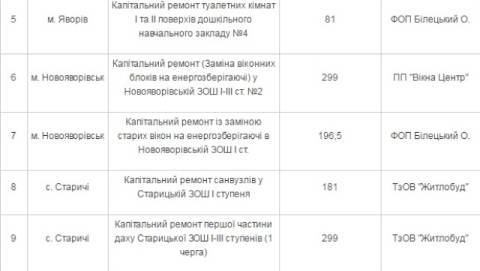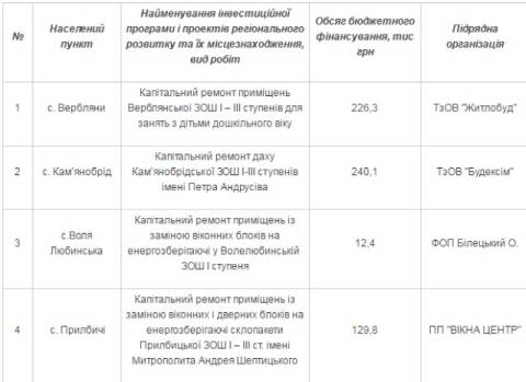 Зокрема, капітально відремонтовано приміщення Верблянської ЗОШ І – ІІІ ст. для занять із дітьми дошкільного віку, дах Кам’янобрідської ЗОШ І-ІІІ ст. імені Петра Андрусіва, туалетні кімнати І та ІІ поверхів дошкільного навчального закладу №4 м. Яворова та ін.
