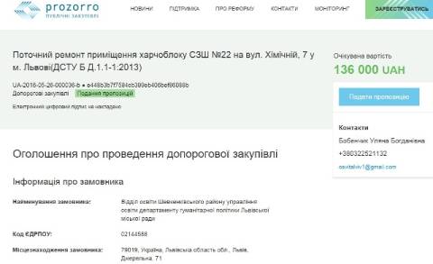 Це було опубліковано на сайті електронних закупівель ProZorro.