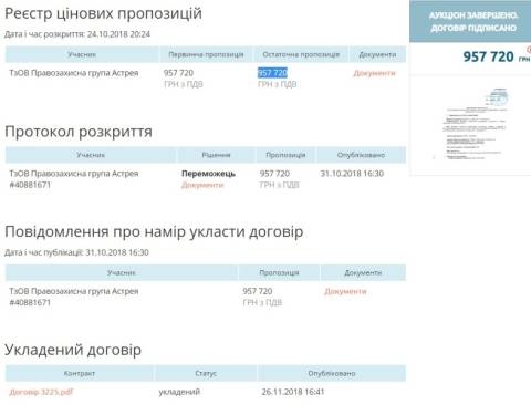 Аукціон стартував 24 жовтня, початкова ціна приміщення становила 957 720 грн, а єдиний учасник торгів, ТзОВ "Правозахисна група Астрея", придбала його за цю ж ціну.
