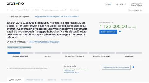 Як йдеться у закупівлі, переможець тендеру має внести зміни у систему електронного документообігу Megapolis.DocNet, яка працює у Львівській ОВА та на території громад області.