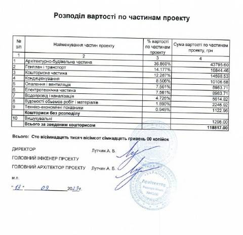 Закупівля охоплює здійснення вишукувальних та проєктних робіт, архітектурно-будівельну частину, кошторисну частину, опалення та вентиляцію, водопровід, відомості про обсяг робіт та матеріали тощо.