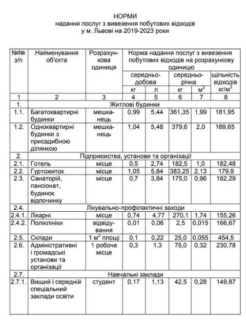 Сьогодні виконком Львівської міської ради затвердив нові норми надання послуг з вивезення побутових відходів у Львові на 2019-2023 роки. Рішення набирає чинності з 1 липня цього року.