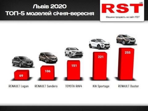 Серед брендів у Львові найчастіше купували Renault. За 9 місяців зареєстрували 490 авто цього бренду. Також львів’яни часто обирали Toyota (320 авто) і Kia (280 авто), – йдеться у рейтингу сайту з продажу автомобілів RST.ua.
