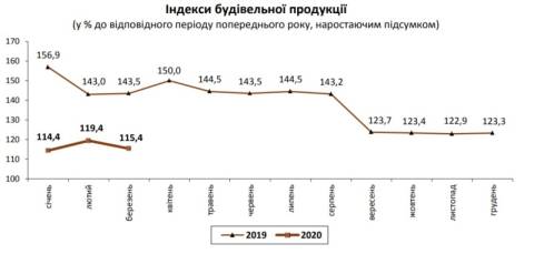 Відтак, індекс будівельної продукції у січні-березні цього року становив 115,4%, порівняно з цими місяцями минулого року.