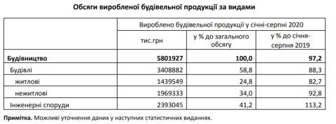 Обсяги робіт зменшились на будівництві житла (на 17,3%) та нежитлових будівель (на 7,2%). Водночас на 13,2% зросли обсяги робіт на будівництві інженерних споруд.