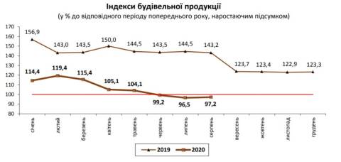 Індекс будівельної продукції у січні-серпні цього року становив 97,2%, порівняно з цими місяцями минулого року.