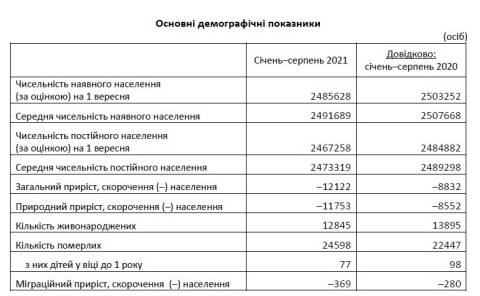 З початку року міське населення скоротилось на 7077 осіб, сільське – на 5045 осіб, натомість у ці місяці 2020 року ці цифри становили 5152 та 3680 відповідно.
