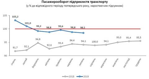 У січні-липні цього року послугами пасажирського транспорту скористалися 134,5 млн пасажирів, що на 5,2% більше, порівняно з цими місяцями 2018 року.