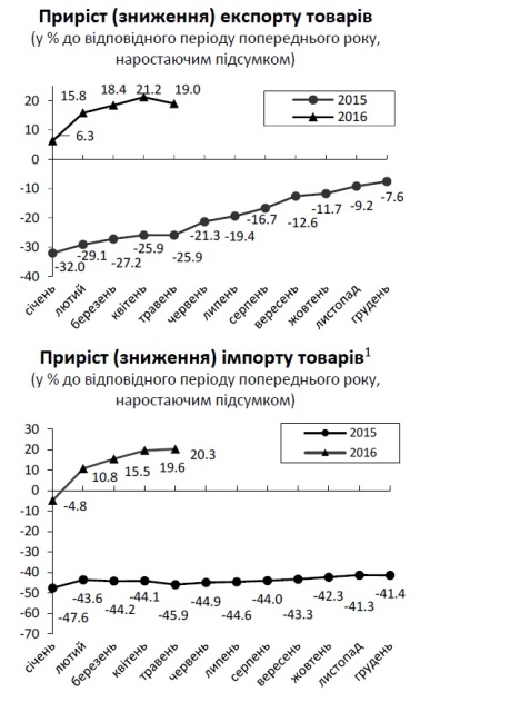 Порівняно з січнем-травнем минулого року експорт зріс на 19%, а імпорт – на 20,3%.