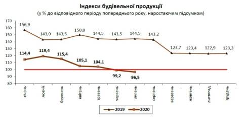 Індекс будівельної продукції у січні-липні цього року становив 96,5%, порівняно з цими місяцями минулого року.