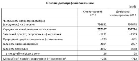 Зокрема, у Львові народились 2 694 дитини, що на 283 дитини або на 9,5% менше, порівняно з січнем-травнем 2017 року, померло 3 667 осіб, що на 9 осіб або на 0,2% більше, порівняно з січнем-травнем 2017 року.