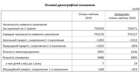Зокрема, у Львові народились 2 065 дітей, що на 81 дитину або на 3,8% менше, порівняно з січнем-квітнем минулого року, померло 3 088 осіб, що на 83 осіб або на 2,8% більше.