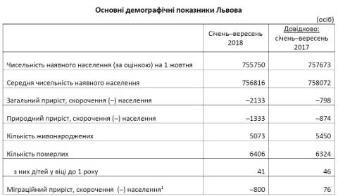 Нагадаємо, станом на 1 вересня 2018 року у місті проживало 755 029 львів'ян.
