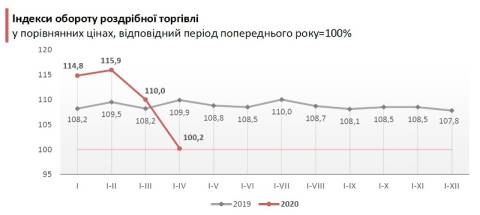 Зокрема, у січні-квітні 2020 року обсяг обороту роздрібної торгівлі збільшився, порівняно із цими місяцями минулого року, на 0,2% і становив 20,1 млрд грн.