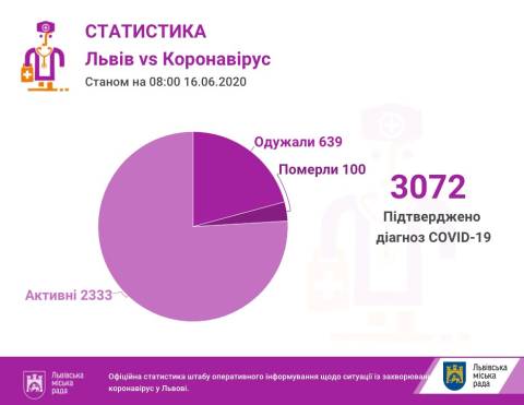 Станом на 08.00 год у Львові та Львівщині підтвердили 3072 випадки інфікування коронавірусом, з них 100 випадків смертельні, а 639 пацієнтів одужали.