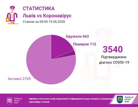 Станом на 08.00 год у Львові та Львівщині підтвердили 3540 випадків інфікування коронавірусом, з них 112 випадків смертельні, а 663 пацієнтів одужали.
