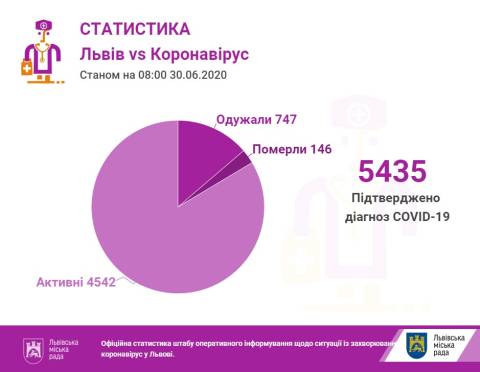 Станом на 08.00 год у Львові та Львівщині підтвердили 5435 випадків інфікування коронавірусом, з них 146 випадків смертельні, а 747 пацієнтів одужали.