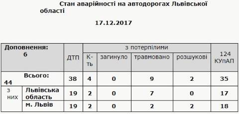 Протягом неділі, 17 грудня, поліцейські зафіксували на Львівщині 38 аварій: у Львові – 19, на території області – також 19 аварій.