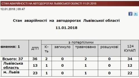 Протягом четверга, 11 січня, поліцейські зафіксували на Львівщині 36 аварій: у Львові – 13, на території області – 23 аварій.