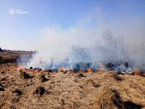 За минулу добу надзвичайники Львівщини ліквідували 72 пожежі сухої трави на площі понад 6 гектарів.