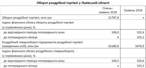 Зокрема, у січні-травні 2018 року обсяг обороту роздрібної торгівлі збільшився, порівняно із січнем-травнем 2017 року, збільшився на 6% і становив 21,8 млрд грн.
