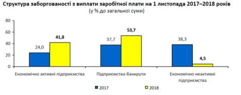 На початок листопада 2018 року 54,5% заборгованості економічно активних підприємств припало на промисловість. Основну частину боргу