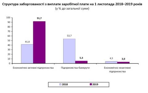 Порівняно з 1 жовтння 2019 року, заборгованість із зарплати збільшилася на 91,8% або на 79,6 млн грн, а порівняно із січнем цього року – у 2,2 раза або на 90,8 млн грн.