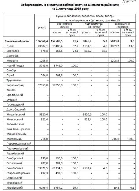 Станом на 1 листопада заборгованість з зарплати у області становила 166,4 млн грн.